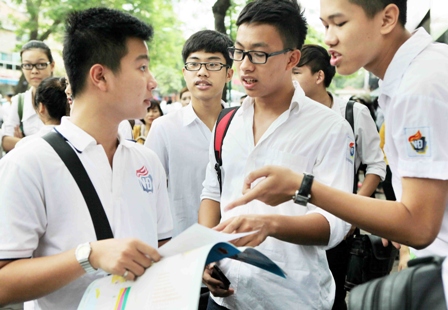 Bàn lại bài sau buổi thi. Ảnh: TTXVN